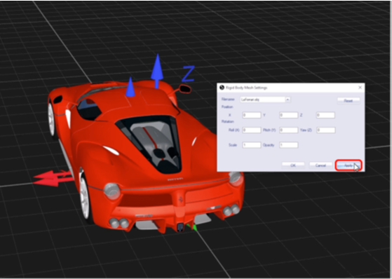 - Wählen Sie die OBJ-Datei, die Sie diesem Rigid Body zuweisen möchten, aus dem Dropdown-Menü aus.